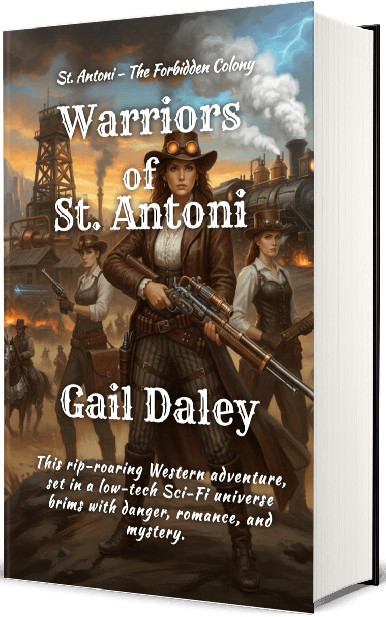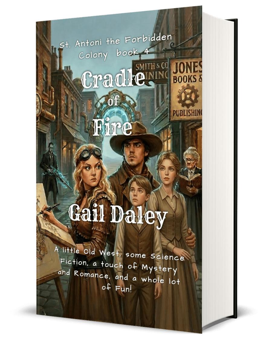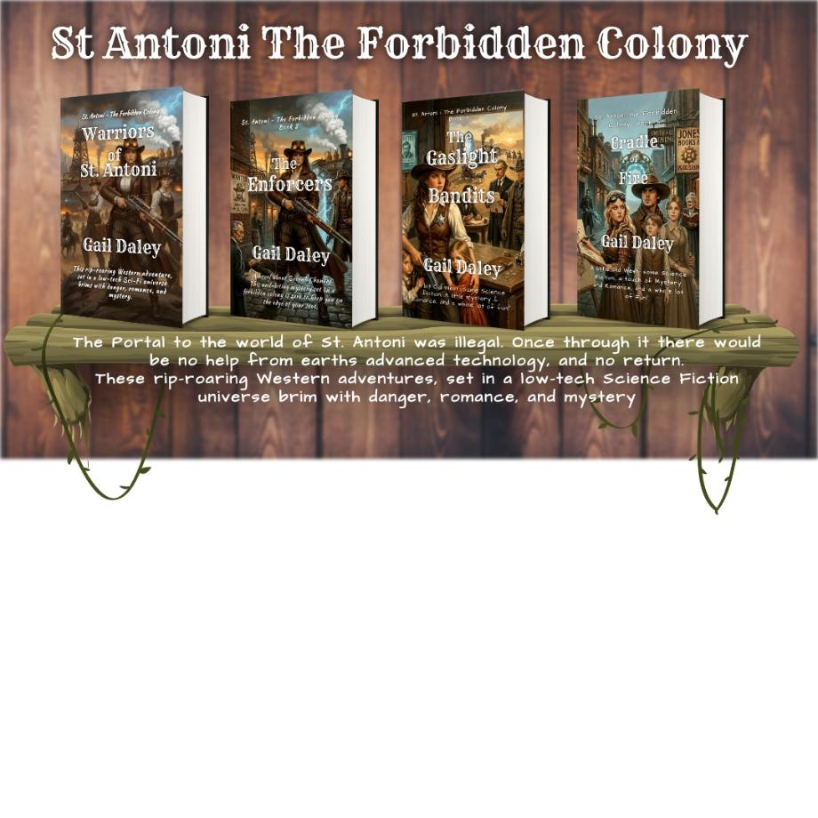 “Recipe for the St. Antoni Series: Take a trip through a Wormhole to another world, then Mix a Shoot’Em Up Western, Victorian Steampunk, Post-Apocalyptic Sci-Fi and add a dash of mystery…”